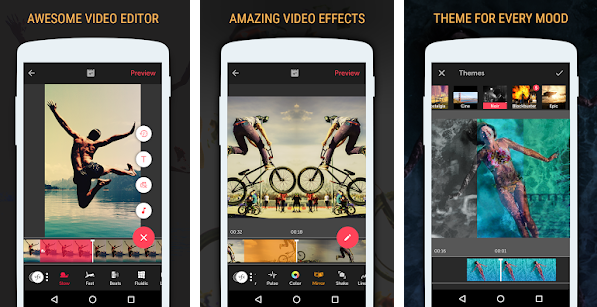 • محرر فيديو قوي – قص وتقطيع وتحرير مقاطع فيديو متعددة لإنشاء قطعة الفيلم المثالية. يمكنك إضافة نص ومرشحات وموضوعات ومؤثرات بصرية وموسيقى خلفية لتحويل الفيديو الخاص بك. يمكنك أيضًا استخدام أداة Reverse الرائعة لتشغيل الفيديو الخاص بك في الاتجاه المعاكس.